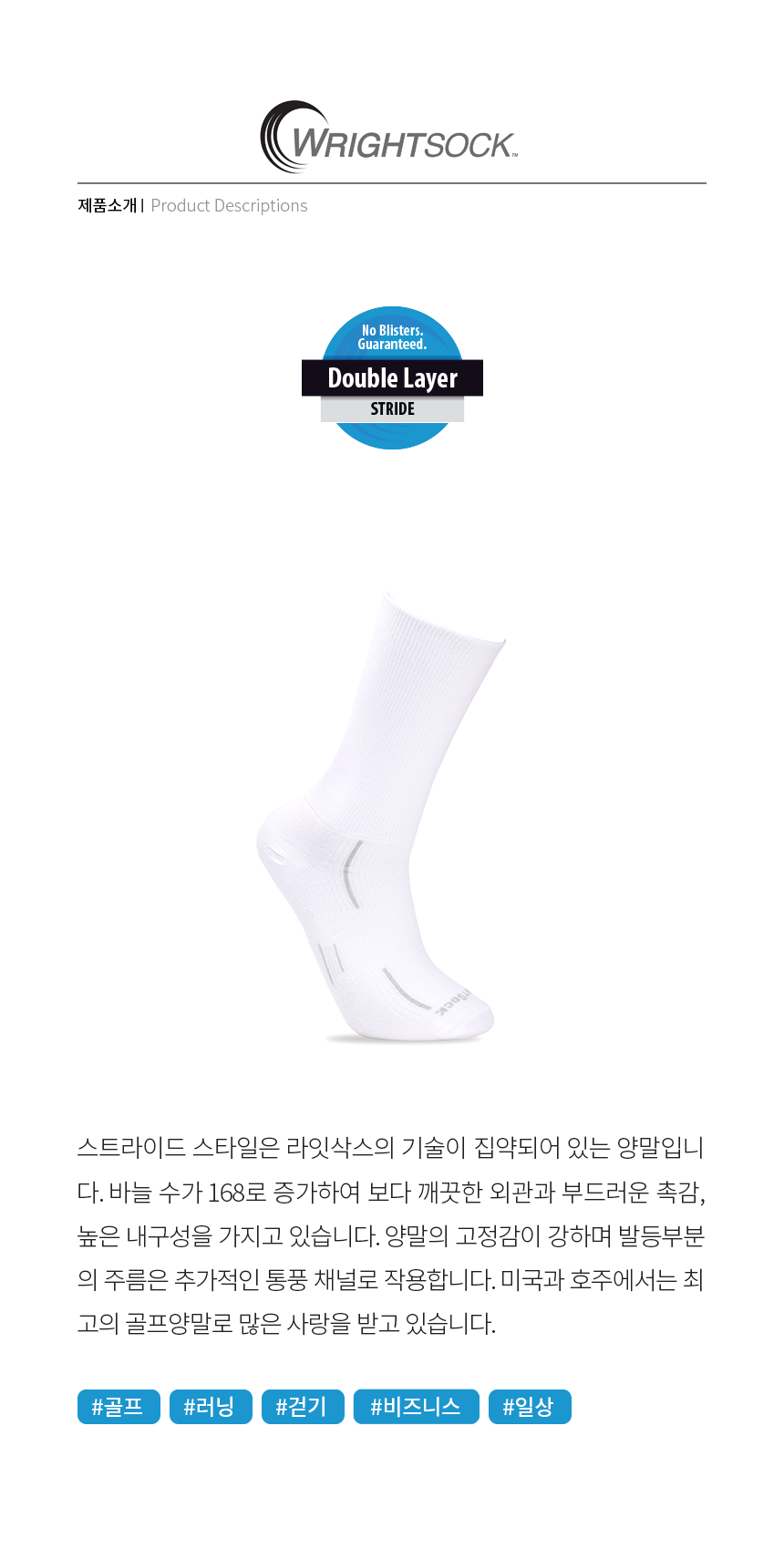 ㆍ소재 : 안쪽 양말 - 70% Dri-Wright® II Polyester, 26% Nylon, 4% Lycra®