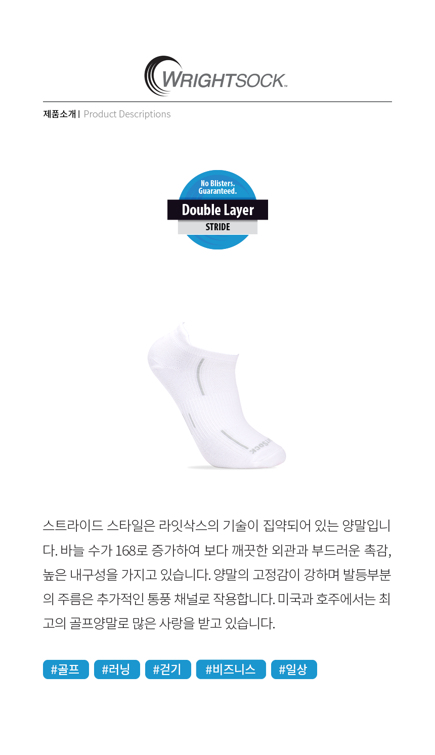 - WRIGHTSOCK(라잇삭스)의 기본 배송료는 3,000원이며, 5만원 이상 구매에 한하여 무료배송입니다.