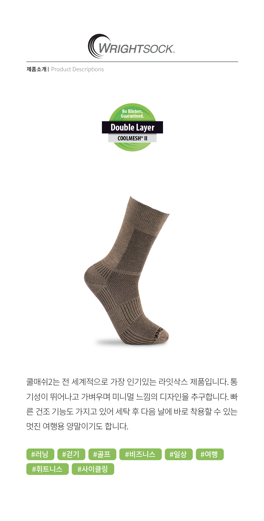 ㆍ소재 : 안쪽 양말 - 70% Dri-Wright® II Polyester, 26% Nylon, 4% Lycra®