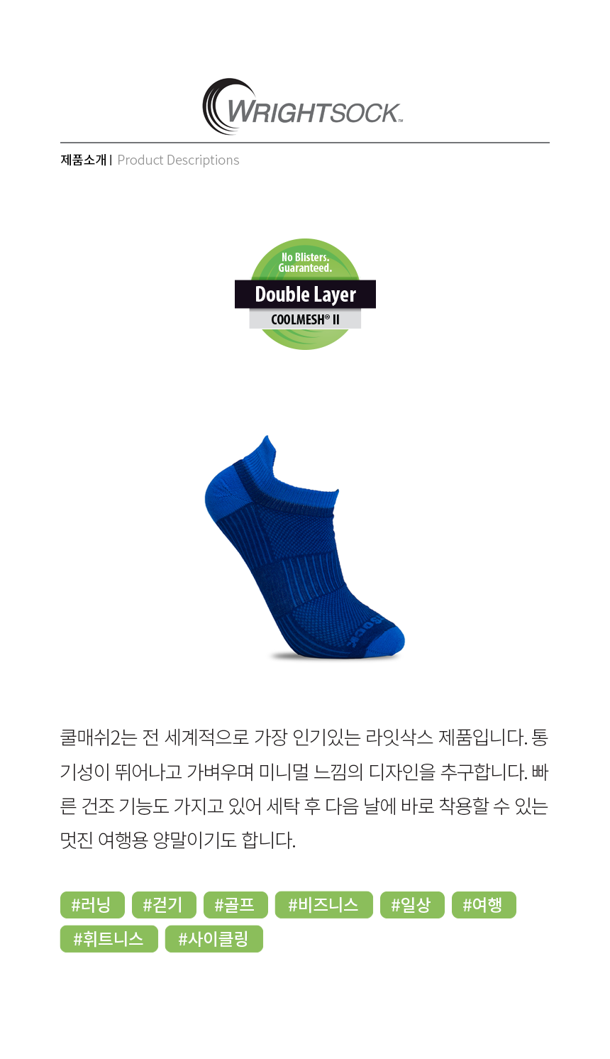 - WRIGHTSOCK(라잇삭스)의 기본 배송료는 3,000원이며, 5만원 이상 구매에 한하여 무료배송입니다.